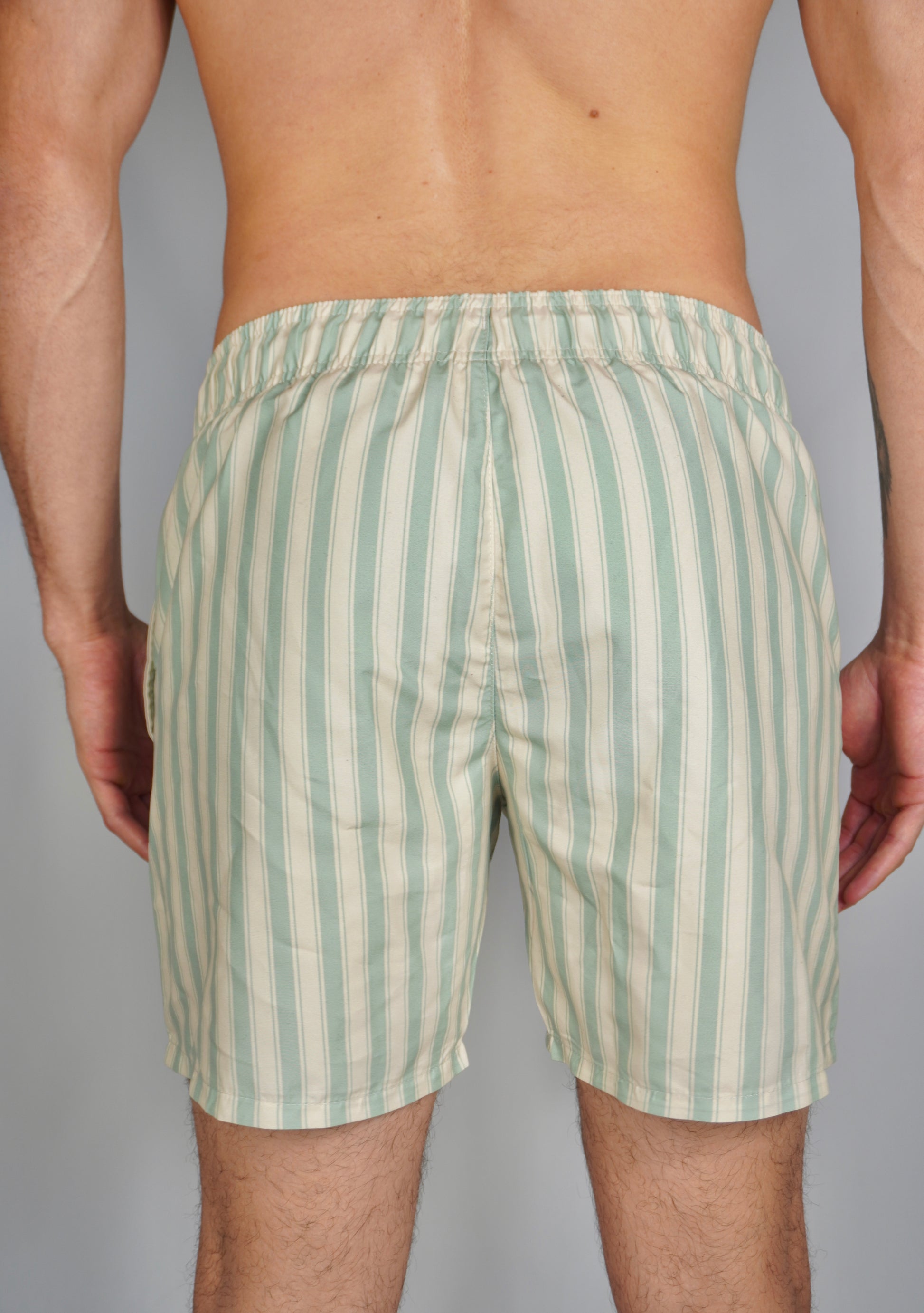The Sage Green Stripe Swim Shorts are a stylish must-have for your summer collection. Made from 100% recycled polyester, these stylish mid-thigh swim trunks dry quickly and feel light on the body. The stretchy waistband with drawstring allows for an adjustable fit, and the soft inner mesh lining ensures maximum comfort.