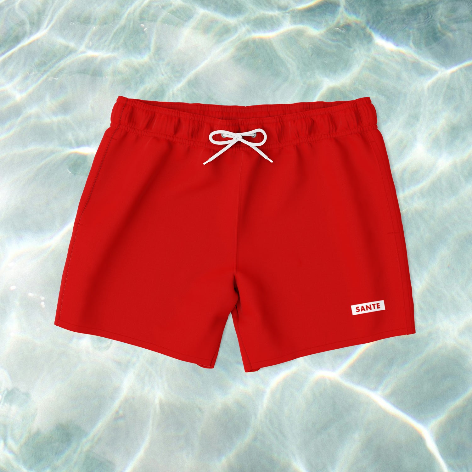 The Classic Red Swim Shorts are a stylish must-have for your summer collection. Made from 100% recycled polyester, these stylish mid-thigh swim trunks dry quickly and feel light on the body. The stretchy waistband with drawstring allows for an adjustable fit, and the soft inner mesh lining ensures maximum comfort.