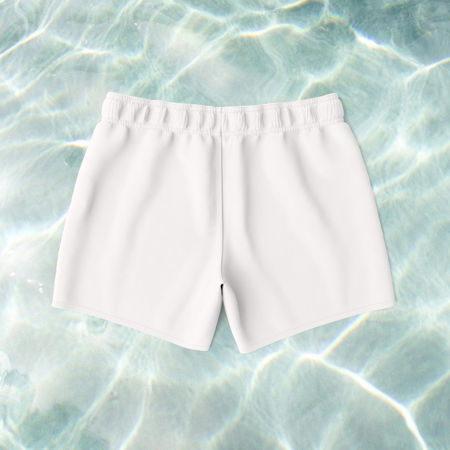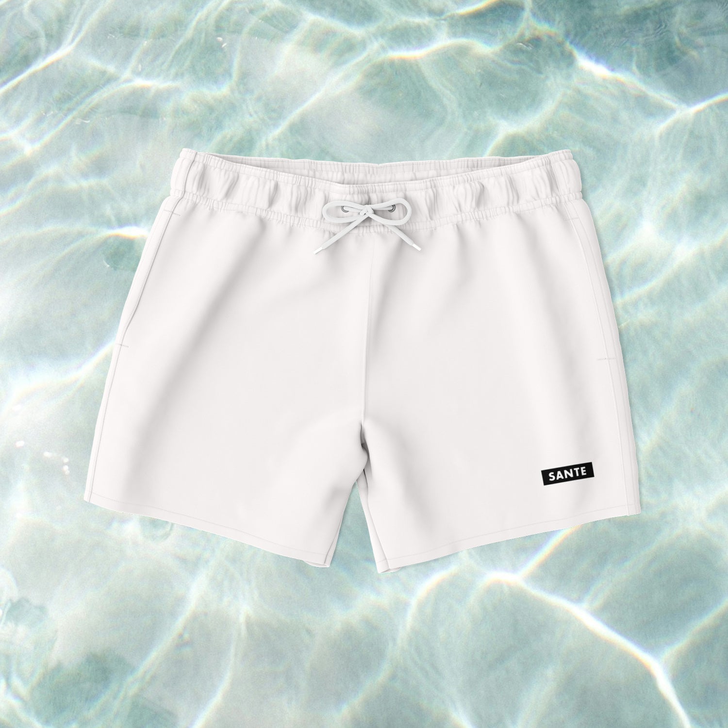 The Classic White Swim Shorts are a stylish must-have for your summer collection. Made from 100% recycled polyester, these stylish mid-thigh swim trunks dry quickly and feel light on the body. The stretchy waistband with drawstring allows for an adjustable fit, and the soft inner mesh lining ensures maximum comfort.